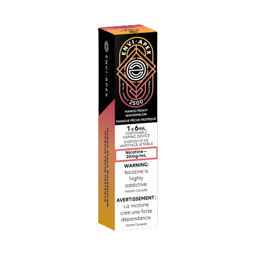 The Envi Apex disposable vape pen offers a satisfying vaping experience with its 6mL e-juice capacity and 1100mAh internal battery, delivering up to 2500 puffs per device. Its anti-slip finish ensures a secure grip during use, providing both comfort and convenience.